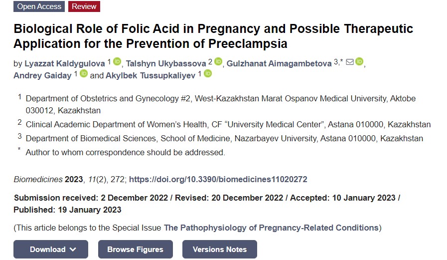 [1] Kaldygulová L, Ukybassová T, Aimagambetová G, a kol. Biologická úloha kyseliny listovej v tehotenstve a možná terapeutická liečba Aplikácia na prevenciu preeklampsie. Biomedicína, 2023, 11(2): 272.https://doi.org/10.3390/biomedicines11020272