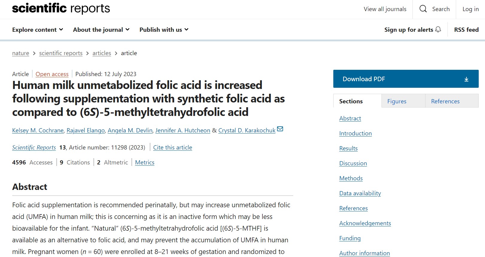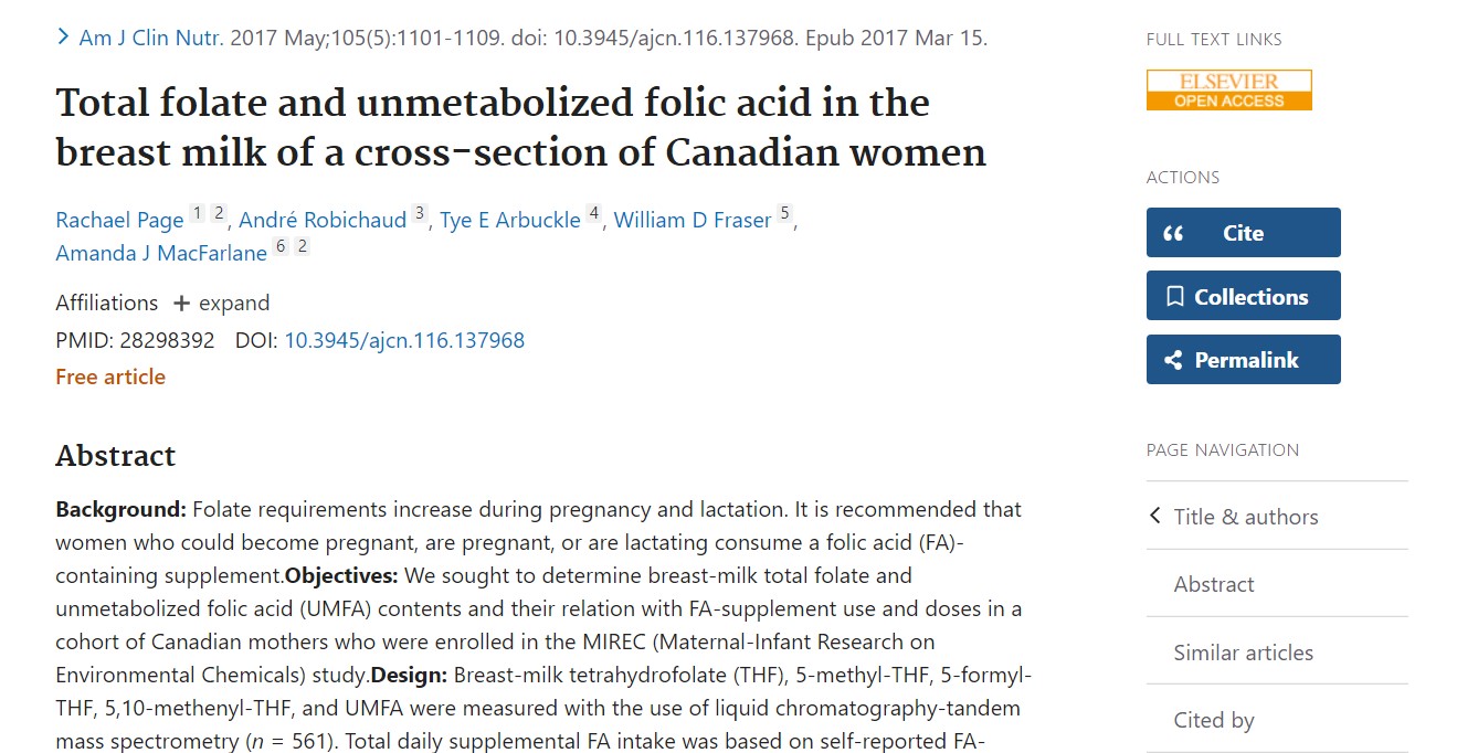 Page R et al. Celkový folát a nemetabolizovaná kyselina listová v materskom mlieku kanadských žien. Am J Clin Nutr 2017;105:1101-9.