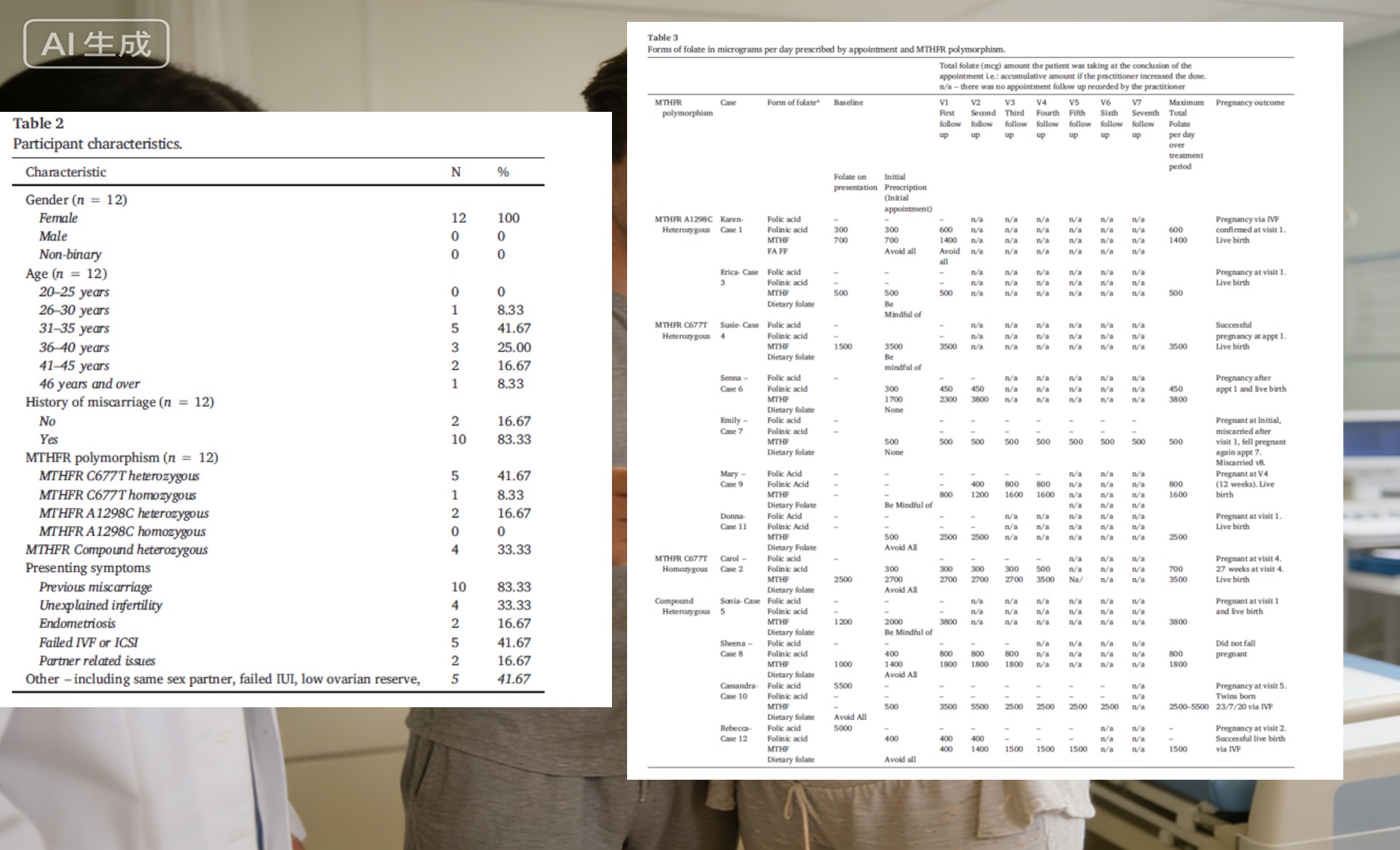 Štúdia zahŕňala 12 pacientok, z ktorých 83,3 % malo v anamnéze potrat a 41,7 % malo skúsenosť s neúspešným cyklom asistovanej reprodukcie. Všetky boli diagnostikovaný polymorfizmus génu MTHFR (najčastejšie heterozygot C677T, heterozygotná zlúčenina atď.). Pre tieto ženy každý negatívny tehotenský test bolo viac než len číslo – predstavovalo emocionálne a fyzické vyčerpanie. Nájsť skutočne vhodný výživový plán sa stalo naliehavou záležitosťou.