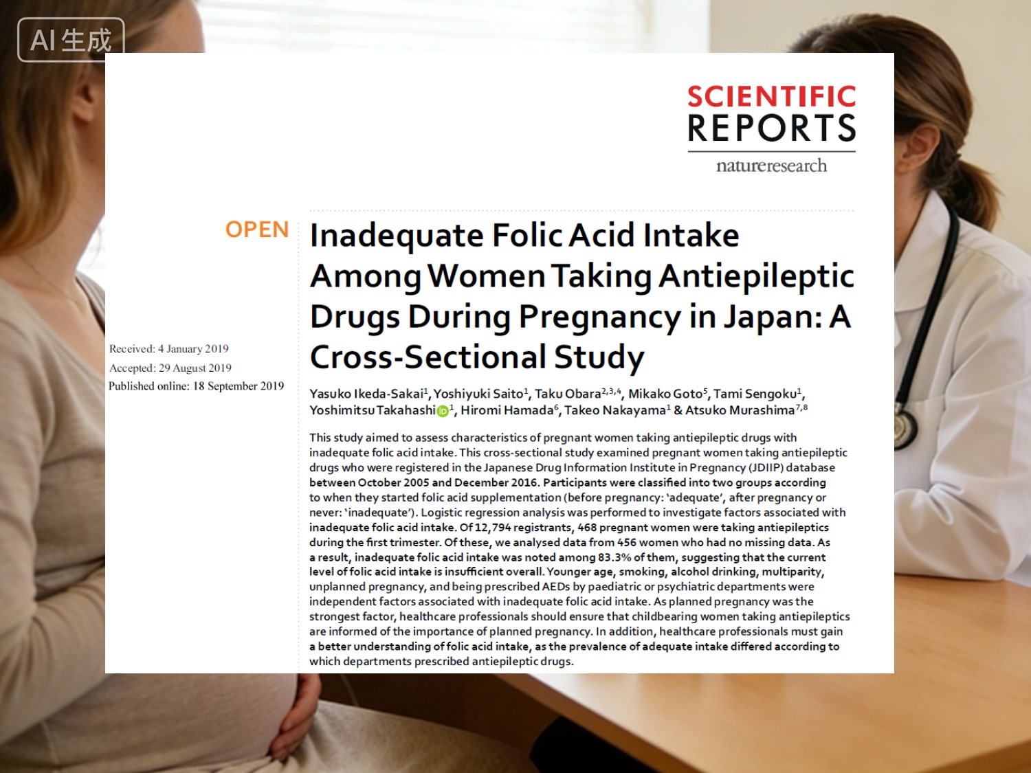 Japonská prierezová štúdia publikovaná v rVedecké správy(Nature portfolio, 2019) skúmal 456 tehotných žien užívajúcich AED: